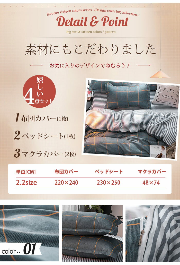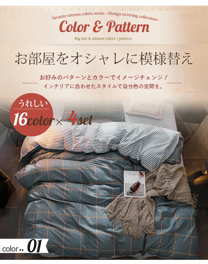 布団カバーセット 大きいサイズ ベッドシーツ 枕カバー 布団カバー ダブル 冬 あったか ピンク セミダブル かわいい 北欧 ふとんカバーセット 布団カバー クイーン 4点セット 寝具セット 二人 16色 可愛い柄