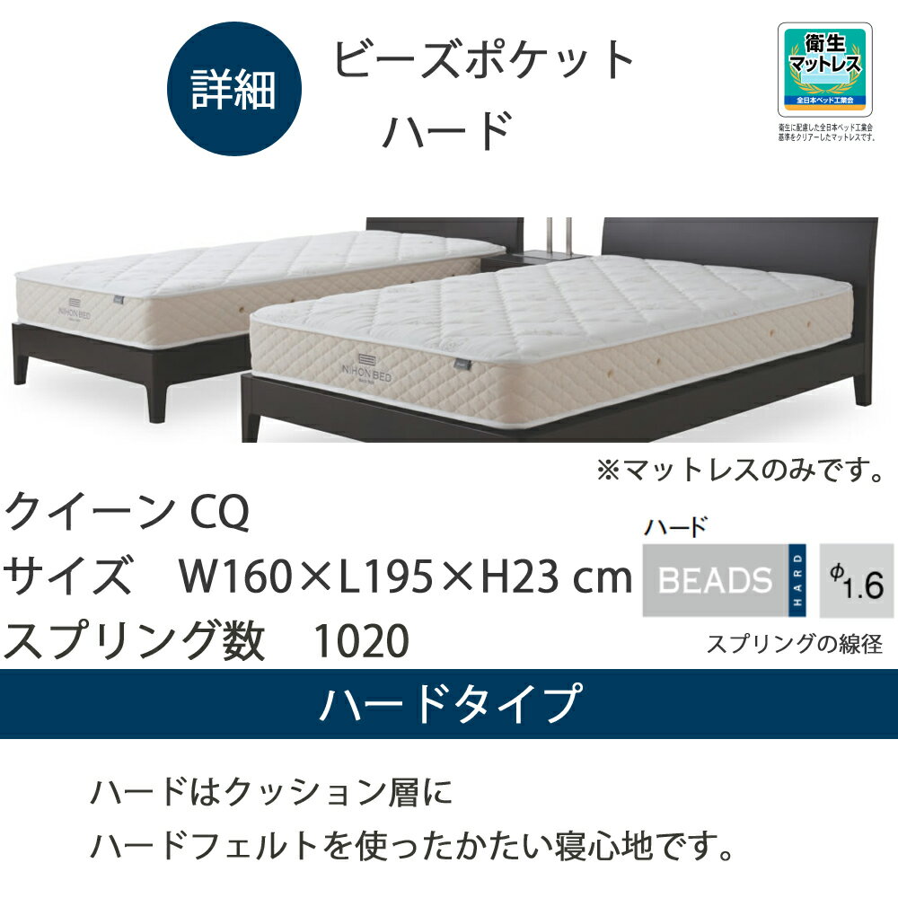【クーポン配布中】【お見積もり商品に付き、価格はお問い合わせ下さい】日本ベッド CQ ビーズポケットマットレスハード 11269 クイーンサイズ 寝具 睡眠 寝心地【代引き不可商品となります】※搬入経路を必ずご確認ください。