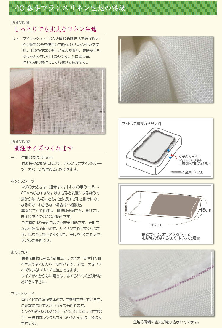 ボックスシーツベッド用シ−ツ クイーン 160×200×30cmハードマンズ・フレンチリネン100%40番手生地使用ベッド用フィットシーツホワイト・生成りの2色日本製
