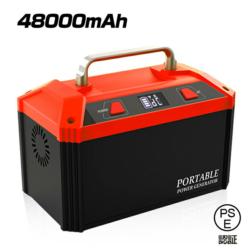 ポータブル電源 大容量48000mAh/178Wh 家庭用蓄電池 非常用電源 PSE認証済 純正弦波 AC/DC/USB出力 3つの充電方法 電量表示 ソーラー充電 照明ライト 高輝度 SOS ポータブル 品質保証あり