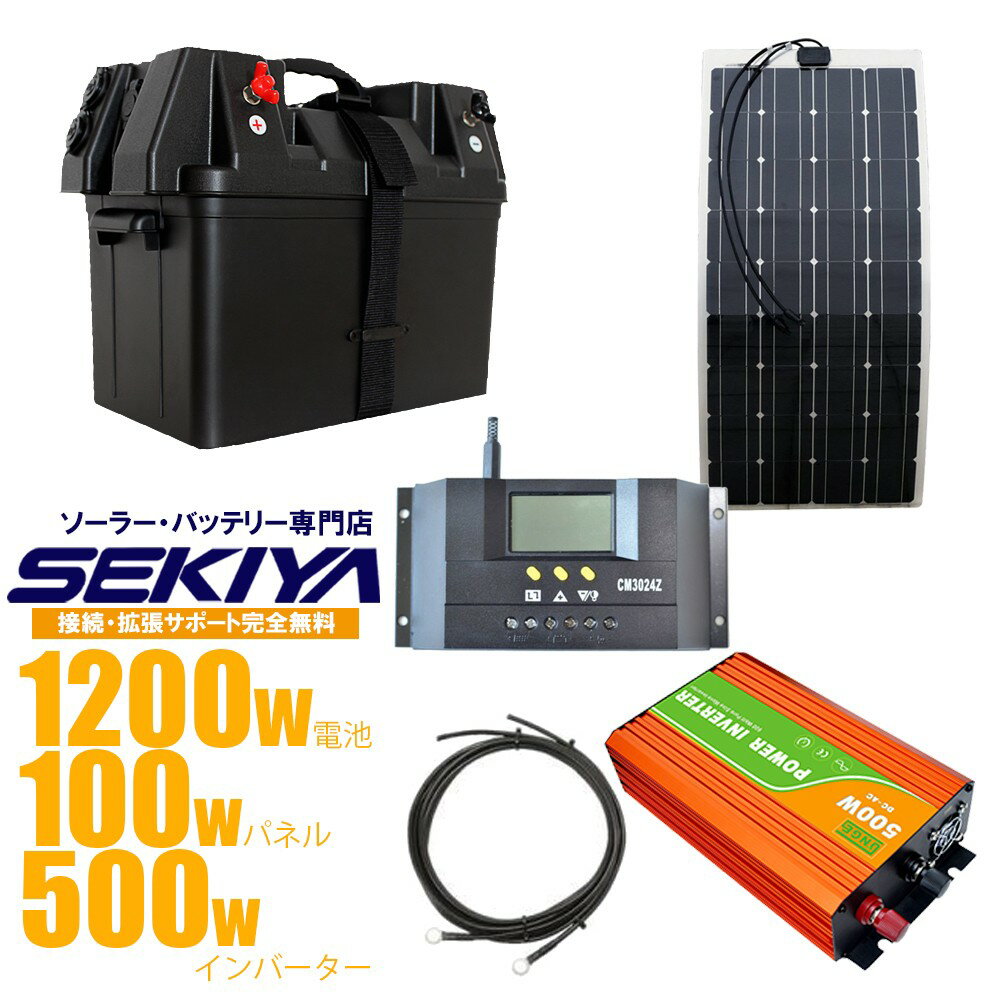 小学生でも組立られるポータブル電源キット ★1200Wh容量 ★500w出力 ★100Wフレキシブルパネル バッテリー+ソーラーパネル+チャージコントローラー+インバーター セット 簡単配線で本格オフグリッドシステム 災害・停電・車中泊に…