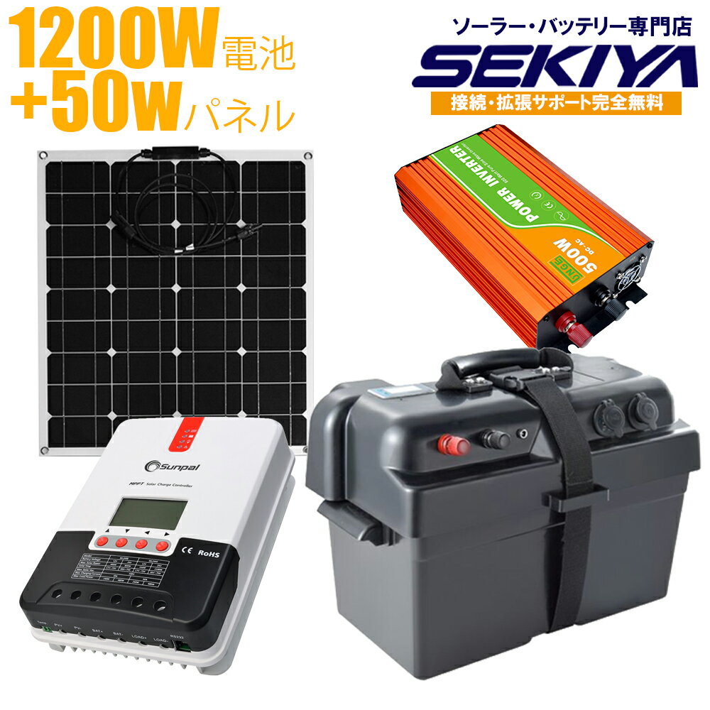 小学生でも組立られるポータブル電源キット ★1200Wh容量 ★500w出力 ★50Wフレキシブルパネル MPPTコントローラ付属 バッテリー+ソーラーパネル+チャージコントローラー+インバーター セット 簡単配線で本格オフグリッドシステム 災害・停電・車中泊に…