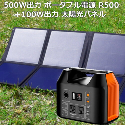 【ソーラーパネル+ポータブル電源】ポータブル電源 大容量 150000mAh R500 +ソーラーパネル 100W 純正正弦波 防災 蓄電池 発電機 停電 家庭用蓄電池 車中泊 ソーラー アウトドア キャンプ 災害 AC DC USB出力 予備電源 非常用 | アウトドア用品 キャンプ用品