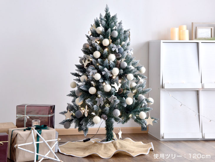 仕様サイズ 外寸:直径80×高さ120cm 【スタッフなっちゃんのおすすめポイント!】 ・雪化粧を施した北欧風ツリー ・豊富な7種類のオーナメント付き ・様々な灯りが楽しめる8パターンのイルミネーション ・省エネルギーなLEDライト ・ワンルームにぴったりな高さ120cmサイズ ・オシャレな足元カバー付き 重量 約2.6kg 素材 PVC(塩化ビニル樹脂)、スチール、プラスチック オーナメント ウールボール(ホワイト×20、グレー×8、ダークグレー×4)、スター×6、スノーマン×3、トナカイ×3、リボン×12、ツリースカート 計57個 電球 LED電球:50個 消費電力:35W 電源電圧:AC100V 50/60Hz 主格電流:0.35A 耐久時間:約8000時間梱包サイズ 26×39×80cm 生産国中国 送料【送料:1000円(※北海道・沖縄県・離島の場合は、別途送料が発生致します。