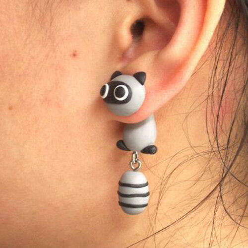 顔が耳の前で、身体が耳の後ろから出るので、まるで耳で遊んでいるように見えるユニークなピアスです。