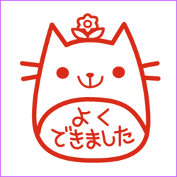 自由研究の添削に!ネコちゃんの「よくできました」マークゆるゆるスタンプ朱インクのシヤチハタ式ゴム印