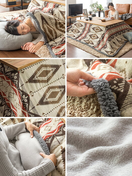 冬服でも人気のオルテガ柄を取り入れ、見た目からも暖かな薄掛けこたつ布団”ORTEGA(オルテガ)” 温もりある表情をした大きめのオルテガ模様が、お部屋に心地よいラフさを与えてくれます。