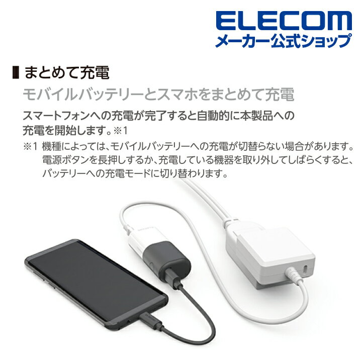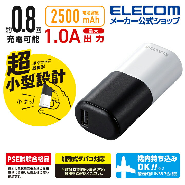 エレコム モバイルバッテリー リチウムイオン電池 モバイル バッテリー iphone アイフォン スマホ 電子タバコ対応 小型 軽量 小さい 2500mAh 1A USB-A出力1ポート PSE適合 ブラック×ホワイト DE-M12L-2500WH